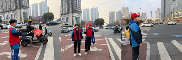 活动当天,在班主任朱小芳、数学老师李仙芝的带领下,同学们身着统一校服,身披红色志愿马甲,手持“护学岗”引导旗,在繁华路口迅速进入“交通志愿者”角色。在交警和老师的指导下,他们分工协作,对非机动车越线、行人闯红灯等不文明行为进行耐心劝导,同时为过往市民提供路线指引。冬日的寒风里,同学们的身影成为街头一道温暖的风景线,规范的动作和礼貌的话语赢得过往市民的点赞。